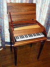 主にバロック時代(ヴィヴァルディ・テレマン・バッハ・ヘンデル等)の通奏低音(チェロ等の低音楽器をバス音として和音を補強する)楽器として発達。ピアノの登場により急速に滅びてしまった。一時はバッハの曲等演奏するにもピアノで代用してきたが20世紀後半に興ったバロック・ブームで復活製作されるようになったもの。鍵盤はピアノとは白黒逆であるが、これはバロック当時貴婦人の指をきれいに見せるためと伝えらている。